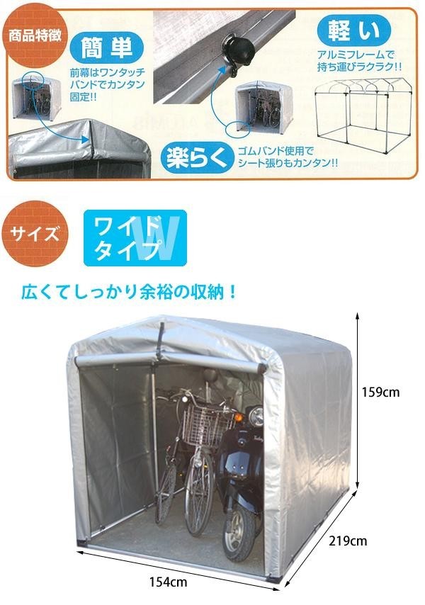 簡単組立のサイクルハウス。前幕はワンタッチバンドで簡単に固定できます。ゴムバンド使用でシート張りも簡単です。アルミフレームなので、持ち運びもラクラク♪簡易物置としても◎ |