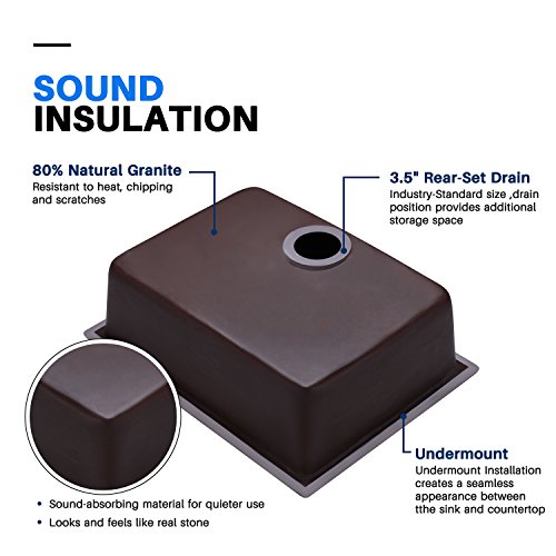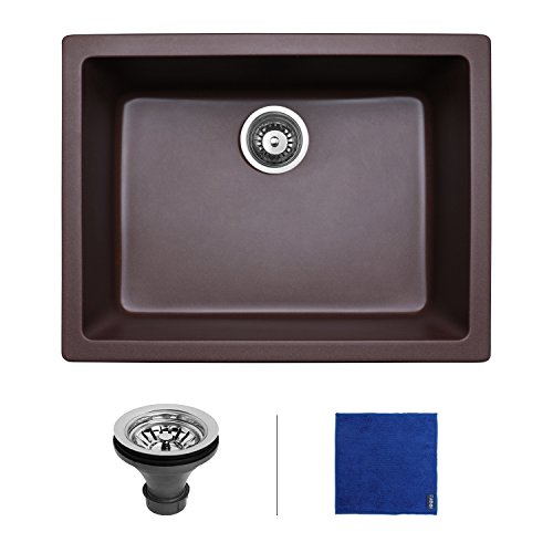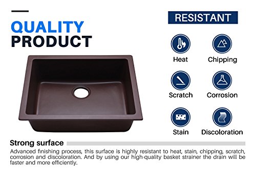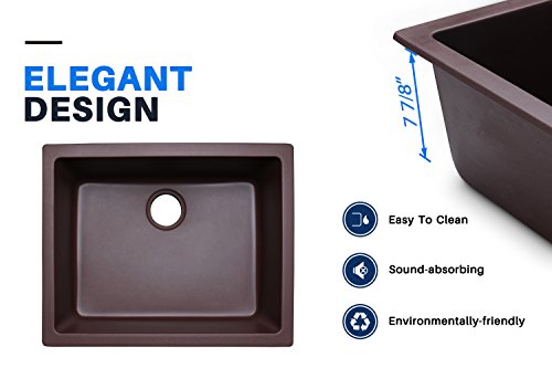 Enbol GSS-2418 24 inch Single Bowl Undermount Granite Kitchen Sink Cafe Brown