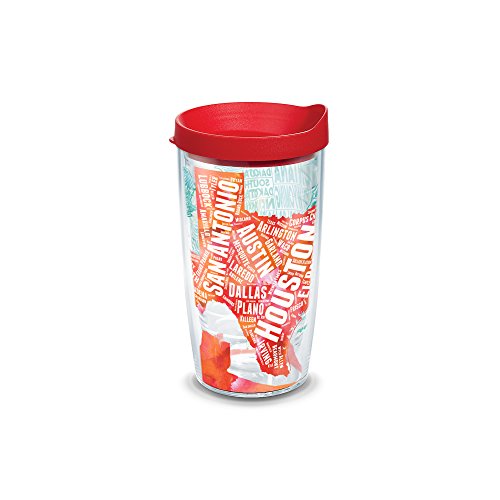 Tervis Texas Typo Map Wrap 16oz Tumbler with Red Lid, Clear