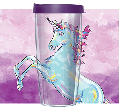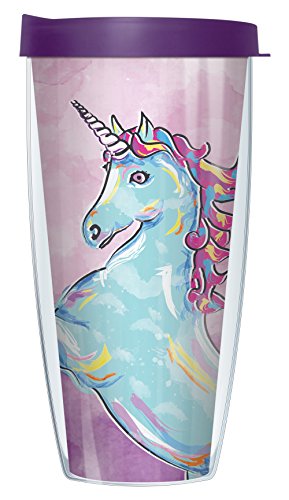 Watercolor Unicorn 22oz Mug Tumbler Cup with Purple Lid