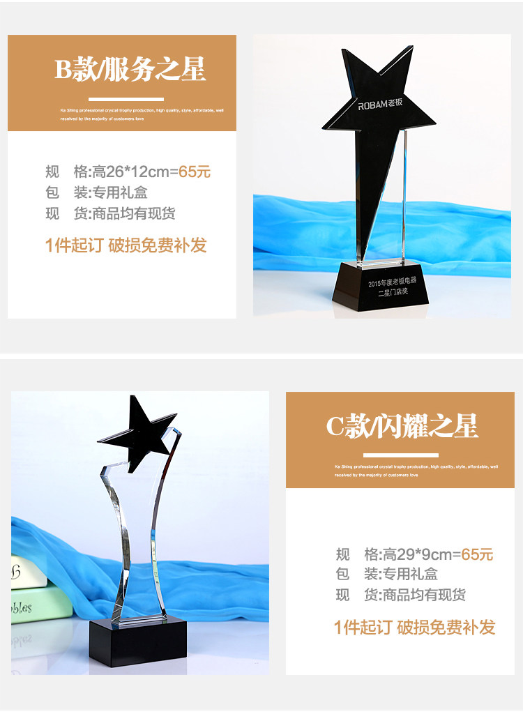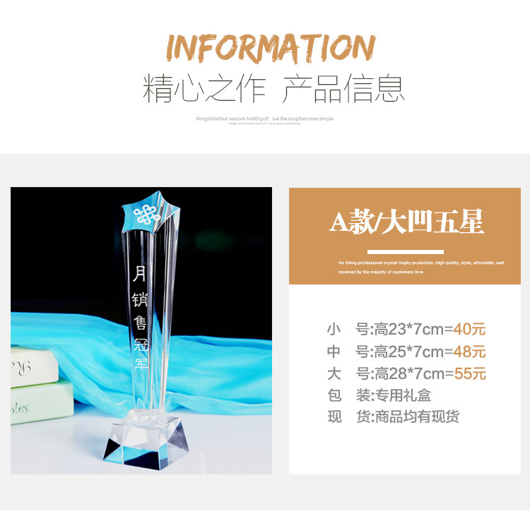 | |  | 新款五角星奖杯奖品水晶定做学校企业比赛员工奖牌定制制作 热销 | |