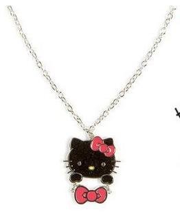 Hello Kitty Black Face Holding Pink Bow Necklace SANN0116