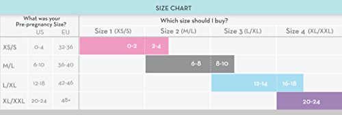 Size: 1 (XSS) fits Pre-pregnancy size 0-4 US Size 2(M/L) fits Pre-pregnancy size 6-10 US Size 3 (L/XL) fits Pre-pregnancy size 12-18 US Size 4 (XL/XXL) 0