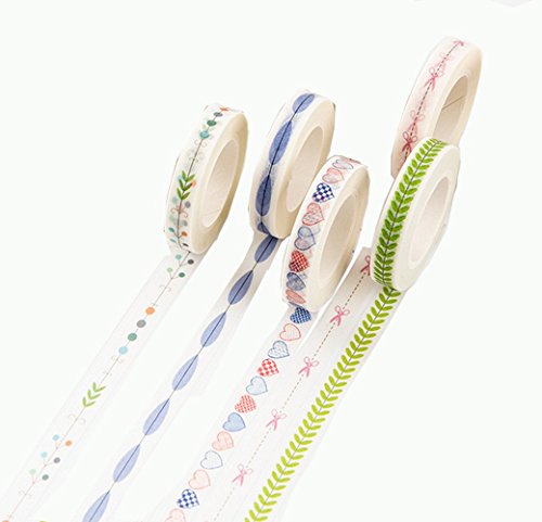 Honbay Washi Tape Set of 5 Rolls Ultral Slim DIY Decorative Tape Sticky Plastic Adhesive Tape for Scrapbooking DIY Crafts and Gift Wrapping