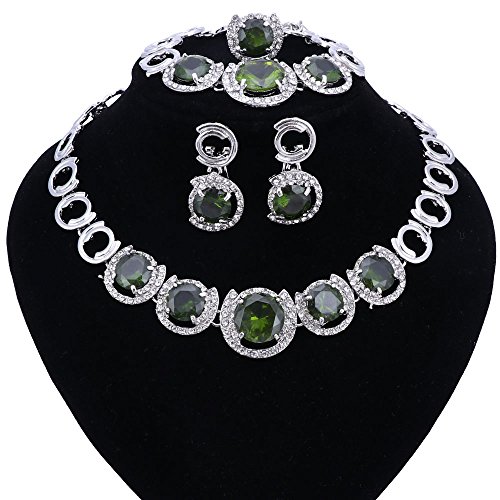 Gold Plated Crystal Luxury Green Zircon Pendent Collar Necklaces Earring Jewelry Sets For Women