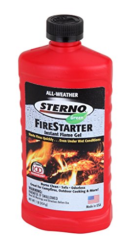 -. Binding : Kitchen -. Brand : Sterno -. Color : N/A -. EAN : 0076642202164 -. Feature : Specially formulated gel fuel made to start all types of fires for outdoor cooking and heat including charcoal grills, campfires and fire pits / Starts fires quickly and easily even under wet conditions / Environmentally preferred / Biodegradable formula burns clean, safe and odorless / Stays where you put it, will not run off or evaporate -. Label : Sterno -. Manufacturer : Sterno -. Model : 20216 -. MPN : E20216 -. NumberOfItems : 1 -. PackageQuantity : 1 -. PartNumber : E20216 -. ProductGroup : Kitchen -. ProductTypeName : KITCHEN -. Publisher : Sterno -. Size : 16 Ounces -. Studio : Sterno -. Title : Sterno 20216 All-Weather Instant Flame Gel Fire Starter -. UPC : 076642202164