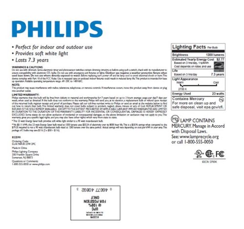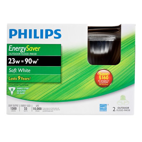 Philips 408922 Energy Saver Compact Fluorescent 23-Watt PAR38 Indoor/Outdoor Flood Light Bulb, 2-pack