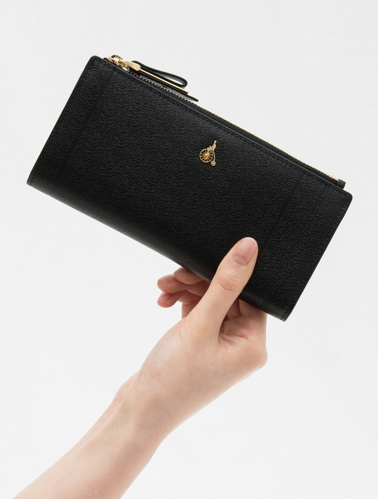 탑지퍼 형태로 되어있어 실용적이며 슬림한 그립감으로 사용하기에 좋은 2단 장지갑입니다.