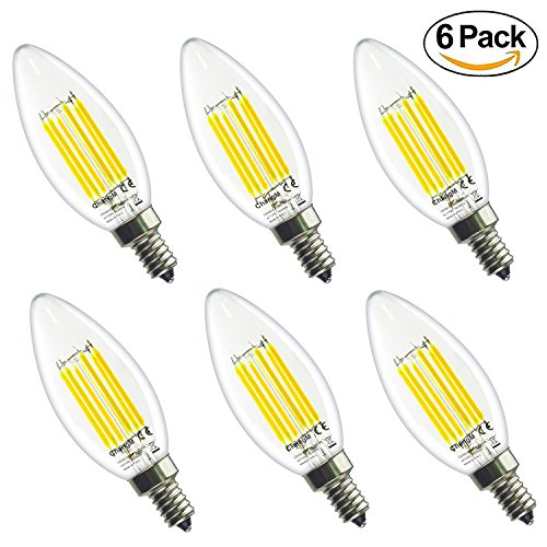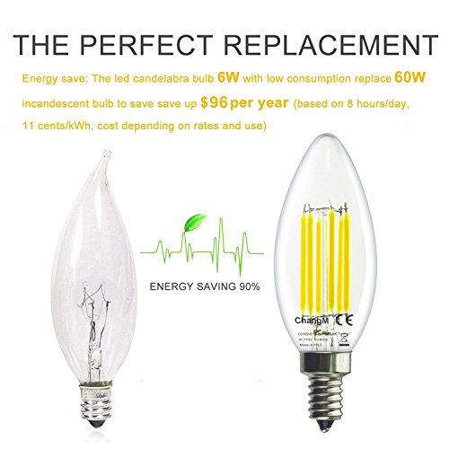 - 【Long Lifespan】Energy saving candle filament bulbs, rated for an astonishing 25,000 hours of use - over 13 years on an average use of 5 hrs/day! Replace 60W Incandescent Bulb by 6W Filament LED Bulb, Save over 90% on Electricity Bill of Lighting.