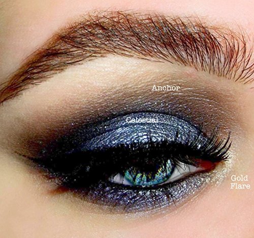 This look includes CELESTIAL on the lid. ANCHOR in the crease and GOLD FLARE on the inner corner.