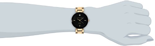 - Feature : 32mm round gold-tone case; Wall-to-wall crystal with black dial frame / Glossy black dial with gold-tone markers at 3, 6, and 9; Genuine diamond at 12 o'clock / Gold-tone hour, minute, and second hands / Gold-tone adjustable link bracelet / Not water resistant