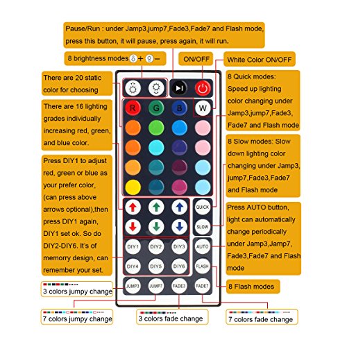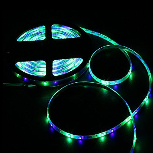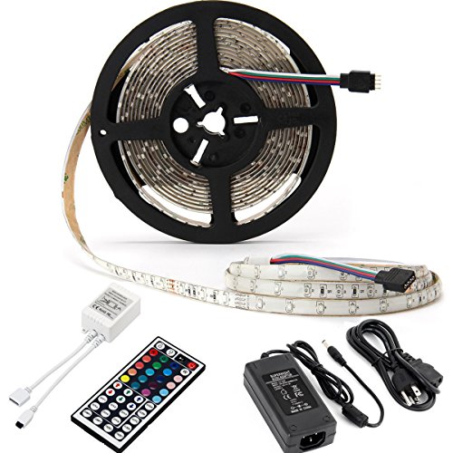 SUPERNIGHT 3528 RGB LED Strip Light Kit, IP65 Waterproof 16.4ft 300leds Flexible Color Changing Rope Lights + Remote Controller + 12V 3A Power Supply