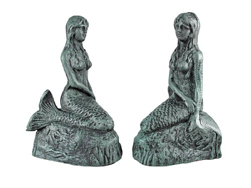 Cast Iron Mermaid Bookends Book Ends Verdigris Finish