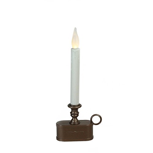 Studio : Brite Star Publisher : Brite Star Binding : Kitchen Product Description Features decorative "dripping wax" accents to add to its realistic charm Flicker flame tip bulb gives the appearance of a real flame Product Features: Color: warm white bulb "Warm white" also known as "warm clear" has a soft natural incandescent glow, similar to candlelight Bulb size: concave wide angle bulb with flame tip light cover Bronze colored base LED lights use 90% less energy For indoor use only Automatic timer function with 8 hours on, 16 hours off Requires (2) "AA" size batteries - not included Dimensions: 10"H x 4.5"W x 1.5"D Material(s): plastic 0