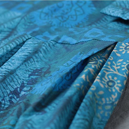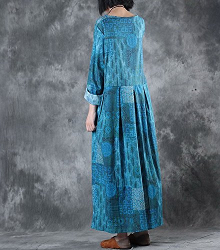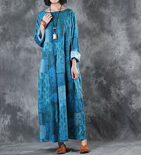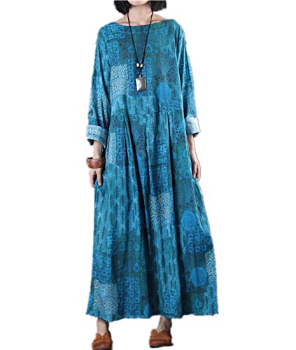 -. Title : Yesno JQ0 レディース ロング ルース マキシ 花柄のドレス 100% リネン ギャザーウエスト クルーネック ロングスリーブ