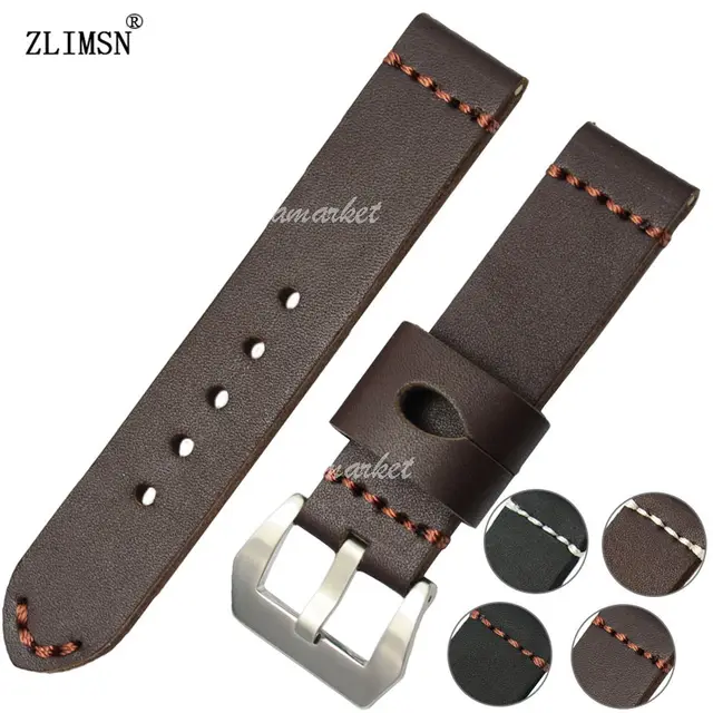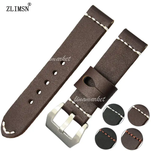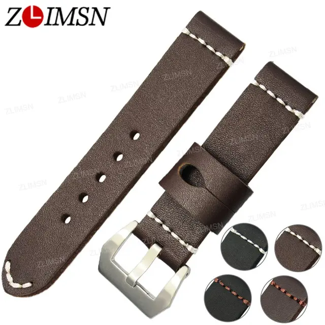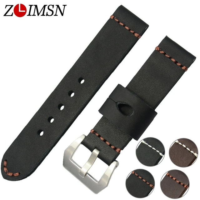 ZLIMSN 두꺼운 정품 가죽 손목 22 24 미리메터 시계 스트랩 블랙 브라운 벨트 스틸 버클 액세서리 시계 relogio masculino