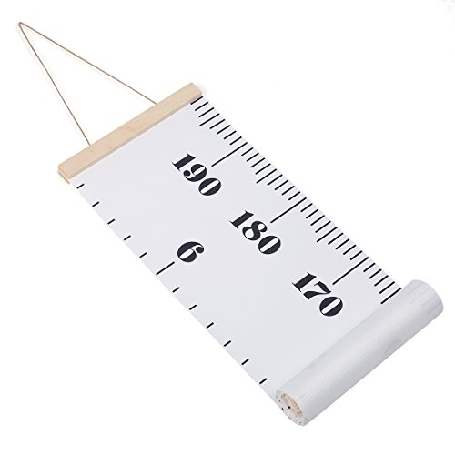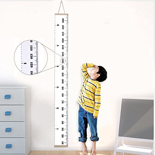 Jeteven Kids Growth Chart Hanging Ruler Roll Up Wood Frame Canvas Height Chart Room Wall Decoration 20x200cm/7.9x79in