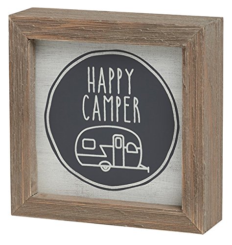 Wooden Box Frame Sign Art RV Trailer Camper Decor Happy Camper 5 x 5 Inches