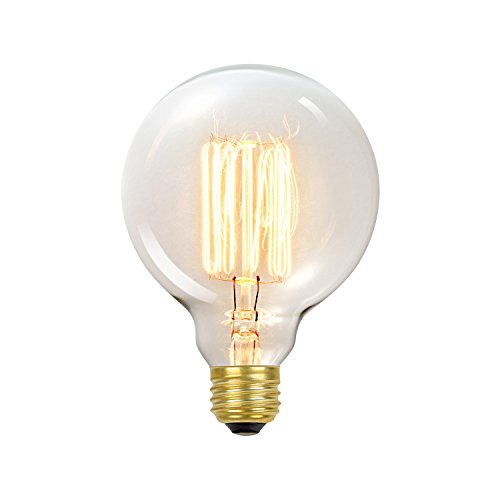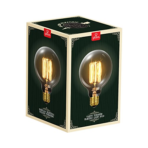 Studio : Globe Electric Publisher : Globe Electric Binding : Tools Home Improvement Product Description Globe Electric's Incandescent vintage designer 60W Vintage Edison G40 Vanity Tungsten Incandescent Filament Light Bulb with E26 base. In the early days of electrical lighting, inventors such as Thomas Edison tested and retested as they searched for long-burning filaments. In 1890, the filament choice was carbonized cotton. Globe Electric’s bulbs have a tungsten filament, which is used to reproduce the single hairpin loop of a vintage design. Position it within a clear shade or exposed socket to enjoy its shape and ambient glow. This Edison inspired bulb is a Steampunk favorite with its glowing cage-shaped filament surrounding a central glass support. Crafted to preserve the look of early 20th-century lighting. Please note, these bulbs are not as bright as modern bulbs of the same wattage and are recommended for exposed socket fixtures. Glass has a goldish amber tint which can vary in degree from light to medium. These bulbs can be dimmed and have a lifespan of 3000 hours. 0