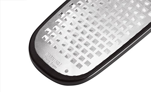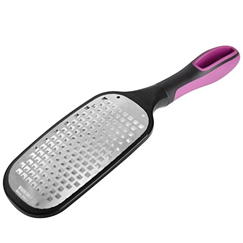 - LARGE, COMFORTABLE HANDLE & NON-SLIP FOOT - The ergonomic handle is comfortable and easy to hold (even for arthritic hands), which gives you good control. The non-slip foot keeps the grater-zester in place during use.