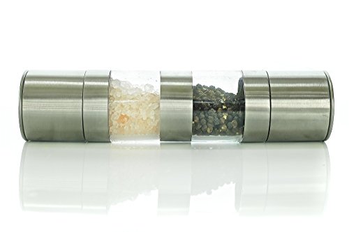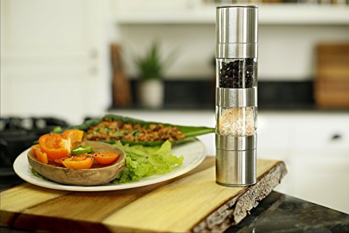 Kitchen All Star 2 In 1 Salt & Pepper Grinder Set | Manual, Compact & Dual Chambered Shaker For Spices, Peppercorn, Cumin, Himalayan Salt & More | Stainless Steel Mill With Ceramic Grinder & End Caps
