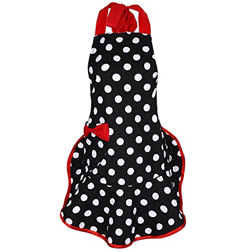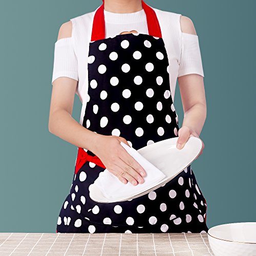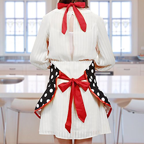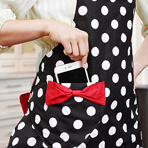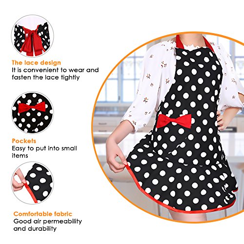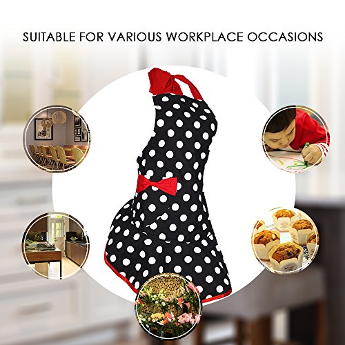 - PERFECT DESIGN : Our apron Length:28.34inch ,Waist Width:25.59inch and Waist Strap:26.77inch, Neck Strap:25.19inch, Our apron are designed with two cute grid bowknot pocket.It makes you look very cute and lovely.Ties at the neck and waist fit most sizes.our apron with lovely dot and pocket a great gift for your wife.This apron is also can be as a work apron in commercial restaurant, cafe,nail shop ,beauty shop .bake cake cooking ,kitchen , hotel, etc.