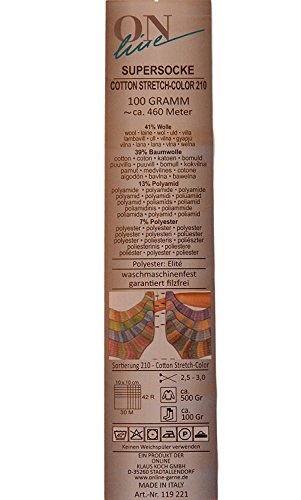 On Line Supersocke Superwash Stretch Wool Cotton Self Striping Sock Yarn 503 Yards 3.5 Ounce (1960)