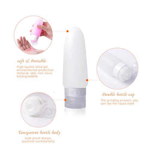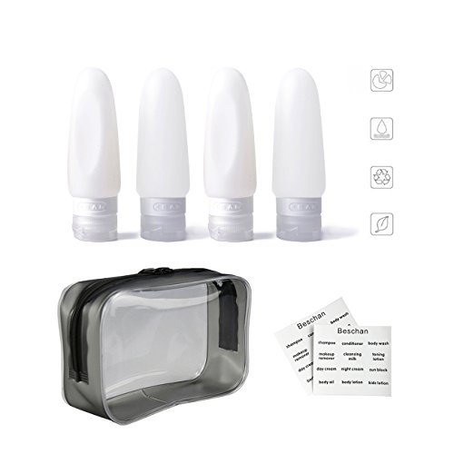 Beschan 4 Pack Silicone Portable Leak Proof Food Grade Travel Bottles for Makeup Cosmetic Toiletries Liquid Containers, BPA Free & Carry-On Approved (4pcs...