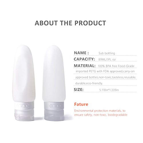 - 100% BPA free Food-Grade silicone with FDA approved,carry-on approved bottles,non-toxic,tasteless,reusable,durable,eco-friendly.