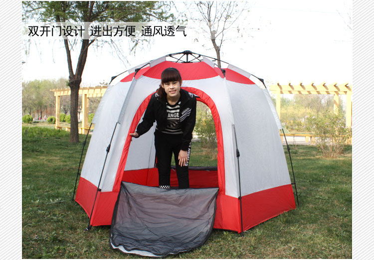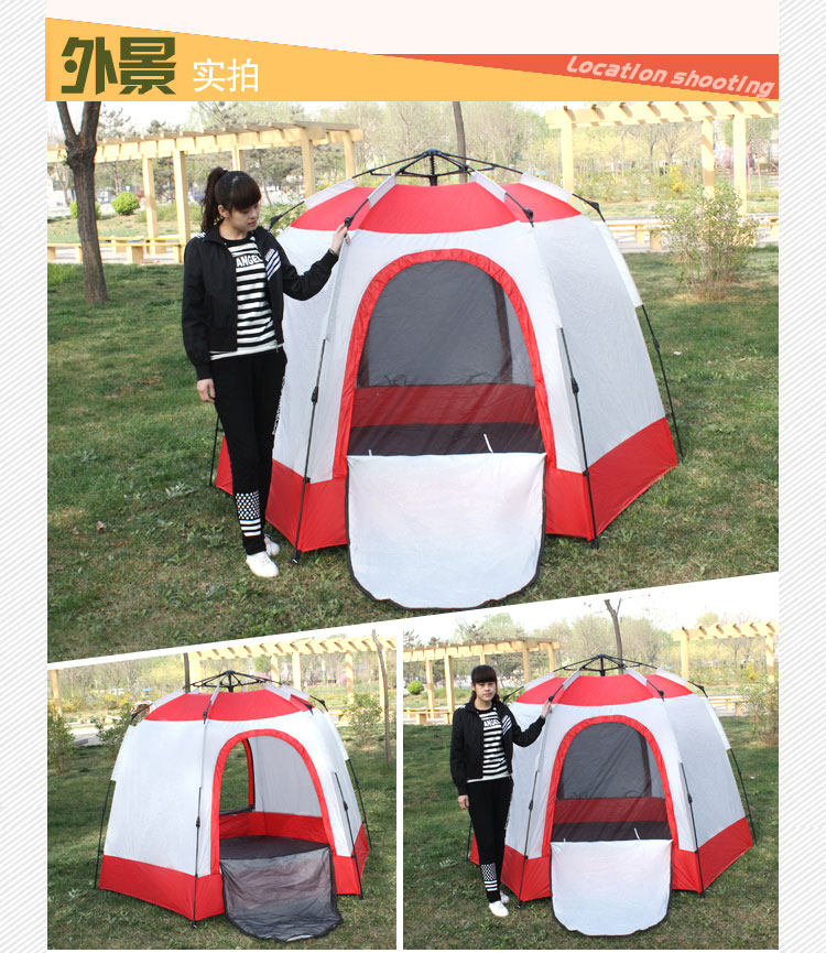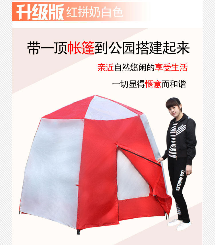 Weight: 5.31KG Color: red white milk fight Size: L * W * H 240 * 240 * 175CM Poles: 9.5MM glass steel Accessories: four nail, a reconciliation, an Oxford cloth bag Tent Inner tent: 190T PU3000 waterproof taffeta Tent bottom material: 150D PU3000 waterproof oxford