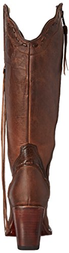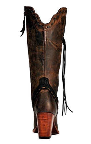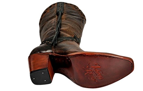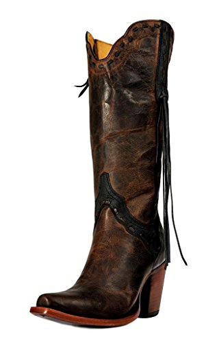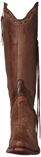 Studio : Johnny Ringo Publisher : Johnny Ringo Binding : Apparel Product Description The shirley features a fashionable 3” stacked heel an the t-snipped toe with some side fringe for added flair. the distressed leather with laced overlay detail finish off the styling details. these boots are handmade using ¾ welt and brass nail construction as well as providing an ample sized opening that is also capable of being stretched to accommodate more calf sizes. johnny ringo works hard to bring you new and unique looks so you can be noticed and recognized for being on trend. these boots mix traditional western style with fast fashion details and a handmade fit. the superior fit of johnny ringo boots may feel snug through the throat while inserting your foot to wear but will be the best all day support and feel you have ever experienced once your foot drops down into the boot. 0