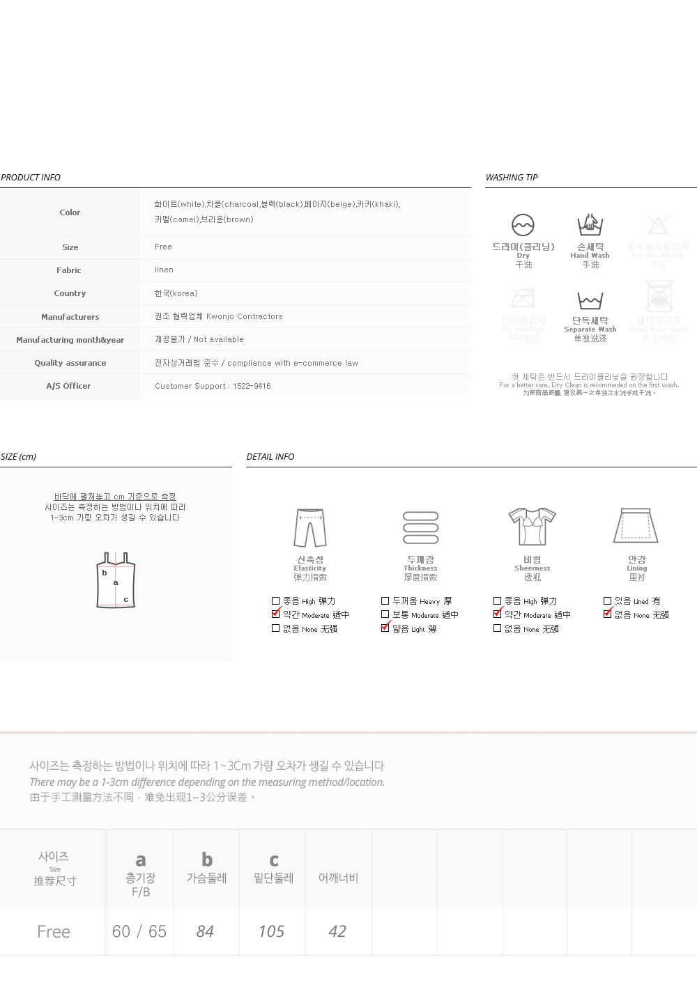 피팅컬러와 사이즈는 베이지/카키,Free입니다.