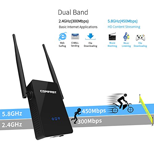 The COMFAST CF-WR750AC wifi extender can takes the signal from your wireless access point or router and retransmits it at a high rate. Its wifi transmit rate upto 750Mbps.