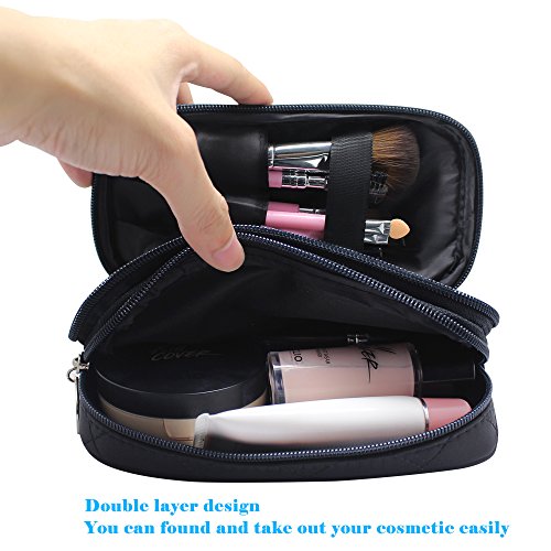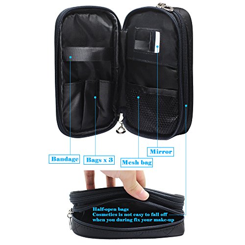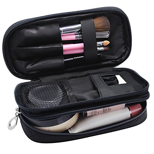 SelfTek Makeup Bag Makeup Brush Travel Organizer 2 layer Cosmetic Bag with Mirror