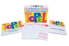 -. Feature : This Listing Is For TOPEL: Test of Preschool Early Literacy / Qty: Complete Kit / Ages: 3 to 5-11 years, Testing Time: 25 to 30 minutes, Administration: Individual / Examiner's Manual, Picture Book and 25 Record Booklets all in a sturdy storage box / This item may differ from the image shown. This item may be a replacement or optional part for the image shown, or differ in model, color, etc. Please review the title and features carefully