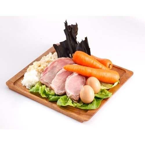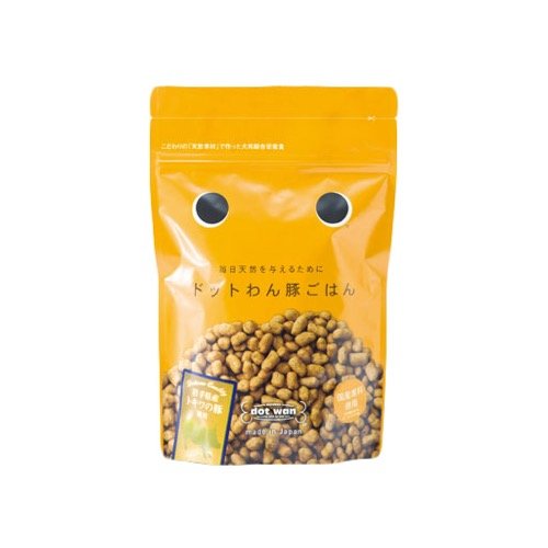 原材料:玄米(山形産・他)、白米(福岡産)、ポークエキス(国産)、豚肉粉(国産)、鶏卵(山口産・秋川牧園・他)、豚肉(岩手産・薬師酪農)、ポークオイル (国産)、豆腐おから(埼玉・神泉村産)、豚肝臓(国産)、カツオエキス(静岡・焼津産)、豚骨カルシウム(国産)、にんじん(千葉産・他)、菜種油 (オーストラリア産・遺伝子組換えでない)、昆布(北海道産・他)、ビタミン・ミネラル類(栄養添加物は総量の1.5%以内)※ 塩化カリウム、ピロリン酸第二鉄、グルコン酸亜鉛、ビタミンE、ビタミンB12、グルコン酸銅、パントテン酸カルシウム、ビタミンD