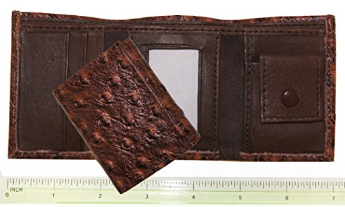 -. Title : AG Wallets Kids Genuine Leather Ostrich ImP.R.Int Tri Fold Wallet 3" x 2.5" (Brown)
