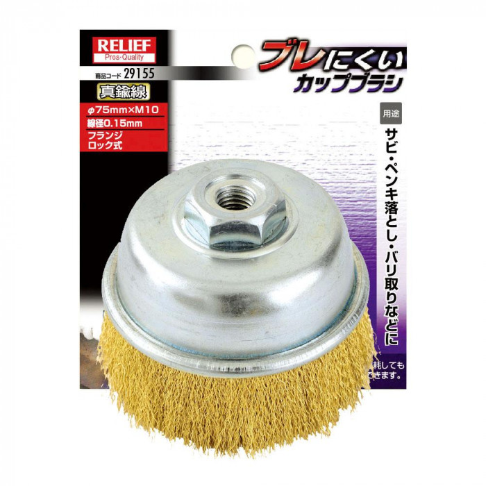 fk094igrjs線材を均一に入れているのでバランスがよく、たとえ長期使用により線材が摩耗して少なくなっても回転による片寄りがありません サイズ Φ75mm×M10、線径:0.15mm 個装サイズ:11×13×6cm 重量 個装重量:259g 素材・材質 真鍮線 生産国 韓国 フランジロック式を採用したプロ仕様のブラシ ■フランジロック式とは 金具(フランジ)の中に均一に線材の束を通して、円盤型に製造する方法です 線材を均一に入れているのでバランスがよく、たとえ長期使用により線材が摩耗して少なくなっても回転による片寄りがありません