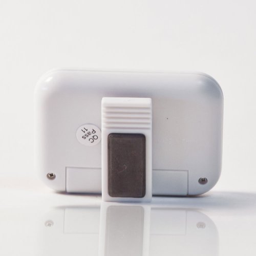 - Feature : Displays indoor temperature in'F / Measures and displays indoor humidity from 20 to 95 percent / Memory function to recall min/max humidity and temperature readings / Easy read LCD, Simple compact design / Flip out stand for tapbletop placement or magnet for placement on metal surface. 2.25"H x 3"W x .625"D