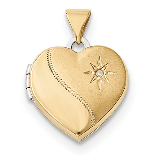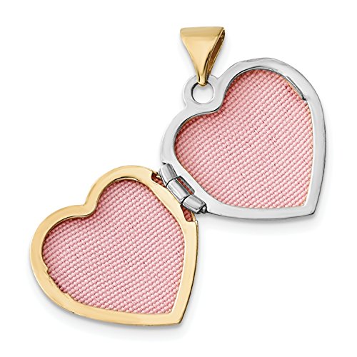ICECARATS DESIGNER JEWELRY 14K TWO TONE YELLOW GOLD 15MM REVERSIBLE DIAMOND HEART PHOTO PENDANT CHARM LOCKET CHAIN NECKLACE THAT HOLDS PICTURES