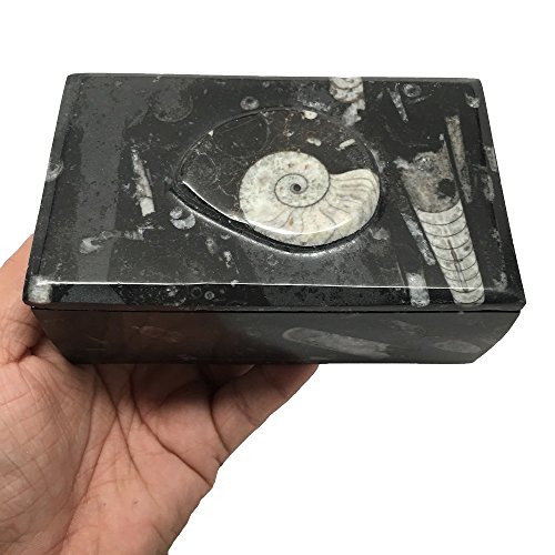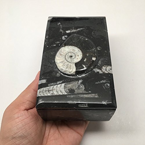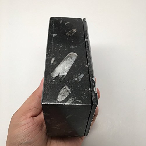 598 Grams, 5" x 3" x 2" Rectangle Shape Orthoceras Handmade Brown Jewelry Box from Morocco, MF752