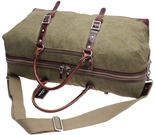 Product Description 100% Complete New Type : Duffle bag Color: Grey,Army Green,Light Coffee Weight : 1.8kg Material : thick heavy canvas with thick crazy horse leather 1. The zipper pulls are large, and the zippers have large teeth,heavy duty lining. 2. There are Hooks and round rings on either side of the bag. These can be hooked to give the bag more of a cinched look, or unhooked to widen the size of the bag vertically. 3. The exterior of the bag has two sturdy handle that you can carry with your hand, or on your wrist,of course,you can use the strap over your shoulder, it depends on how you want to carry the bag. 4. One zipper on the front is vertical, and is the perfect size for other important items, or even personal items. 5. The second zipper is horizontal and is perfect for holding items such as I.D.s, wallets, papers, etc. anything else you need to retrieve quickly. 6. It's perfect for one person for three - five day trip.The bag is the perfect weekender carry on size and looks gorgeous and stylish no matter where you are going. If you are not satisfy with something, please don't leave us negative or neutral feedback right away.Please contact us via email.Through the order ,you can find out : contact seller . Since the size is measured by hand, the size of the actual item you received could be slightly different from the size above. Meanwhile,there could be some slight differences in the color tone of the pictures because of lighting effects, monitor brightness . 0