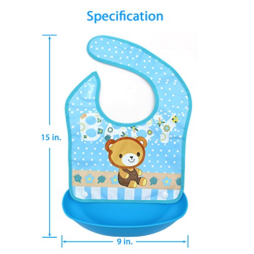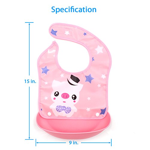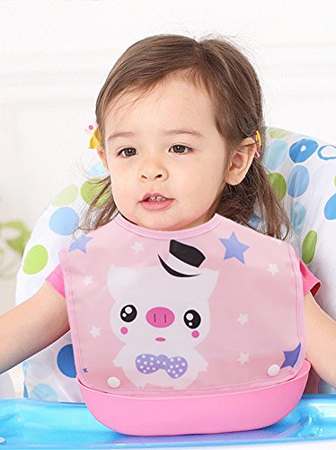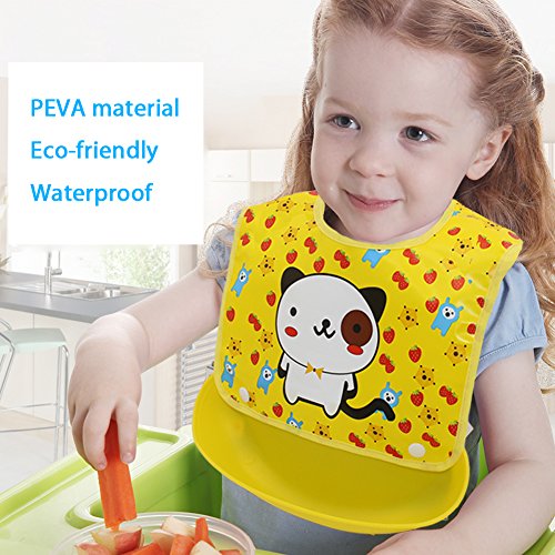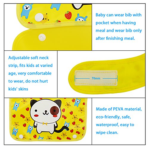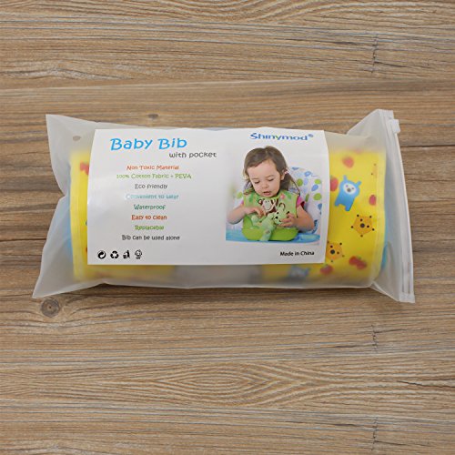 -. Feature : COMPLATELY SAFE, HEALTHY AND ECO- FRIENDLY - Shinymod baby bib provide maximized protection to kids. It made of tested and safe PEVA material, non- toxic, odorless, certified safe for foods. Just buy with confident! / REPLACEBLE, TWO WAYS TO WEAR - Came with unique replaceable design. Bib and pocket connect with two stable buttons. Make parents easily to take the pocket on and off from the bib. Baby can wear bib with pocket when having meal and wear bib only after finishing meal. It is foldable, very convenient to take anywhere, such as restaurant, picnic, and friends' / CATCH ANY MESS, KEEP STAINS OFF - Most of kids want to feed themselves, as a result, they will drop lots of food. Shinymod deep big wide dimensional pocket catches any mess without change the shape, does not spill, and actually stays open. Keeps your kids' clothes, dining table and floor so clean / EASY TO CLEAN, SAVE TIMES - It is waterproof and anti oil. Can easily use a damp cloth to wipe clean or wash it under running water. Minimize parents' time to clean after meals with babies or toddlers. And the bib is fast-drying, so you don't need to wait for it to dry once you've washed it to use it again / MAKE KIDS ENJOY MEAL MORE - Most of kids do not like eating, when it is time for meal, they always refuse by crying. Our bibs with cute pattern design, various vivid colors catch kids' eyes soon. With the help of our bib, kids will fall in love with meal