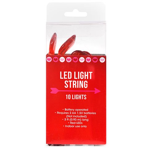 LED Lights 10 Count Battery-Operated Strands Valentine's Day Heart Shaped LED Lights, 3 ft.