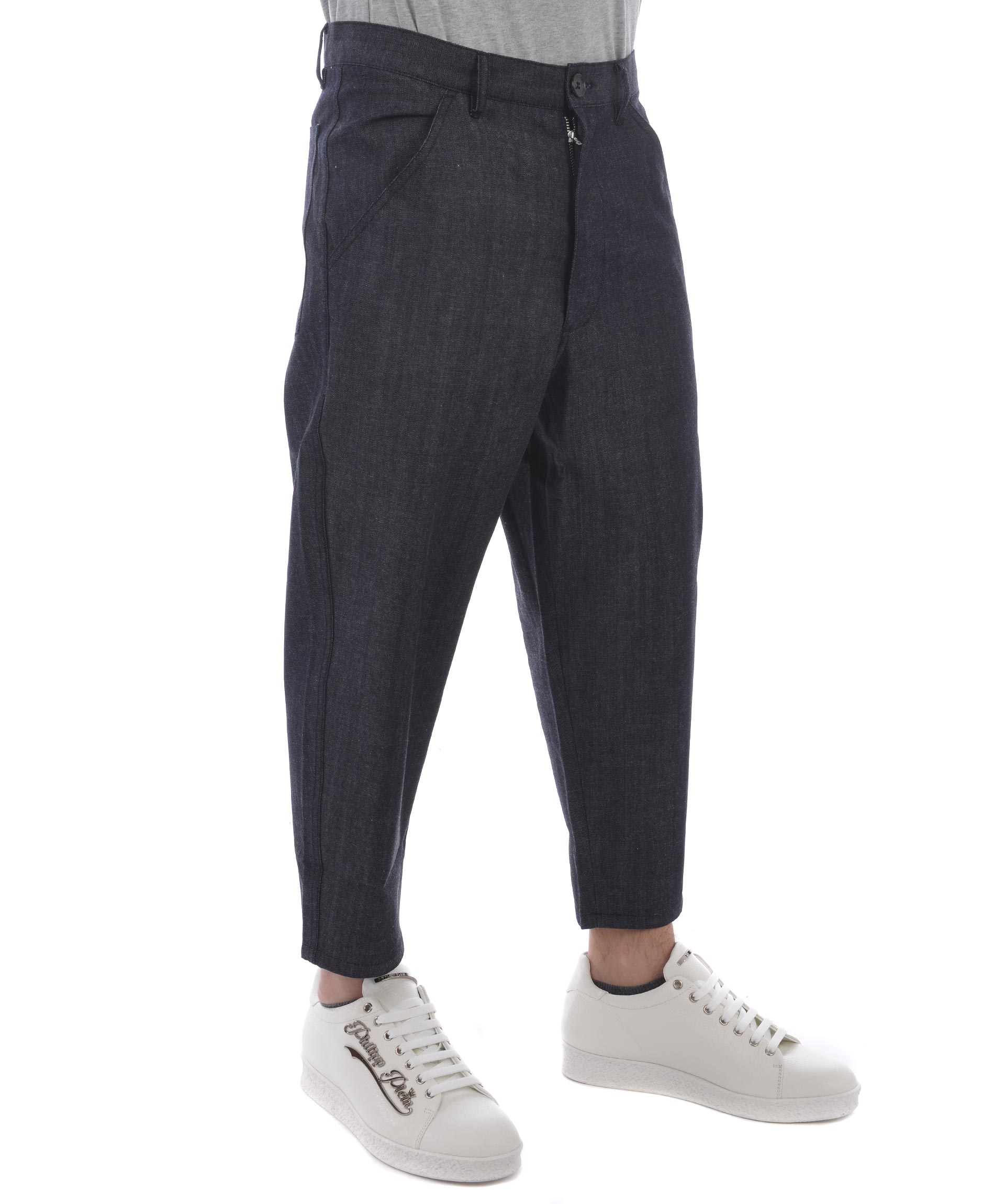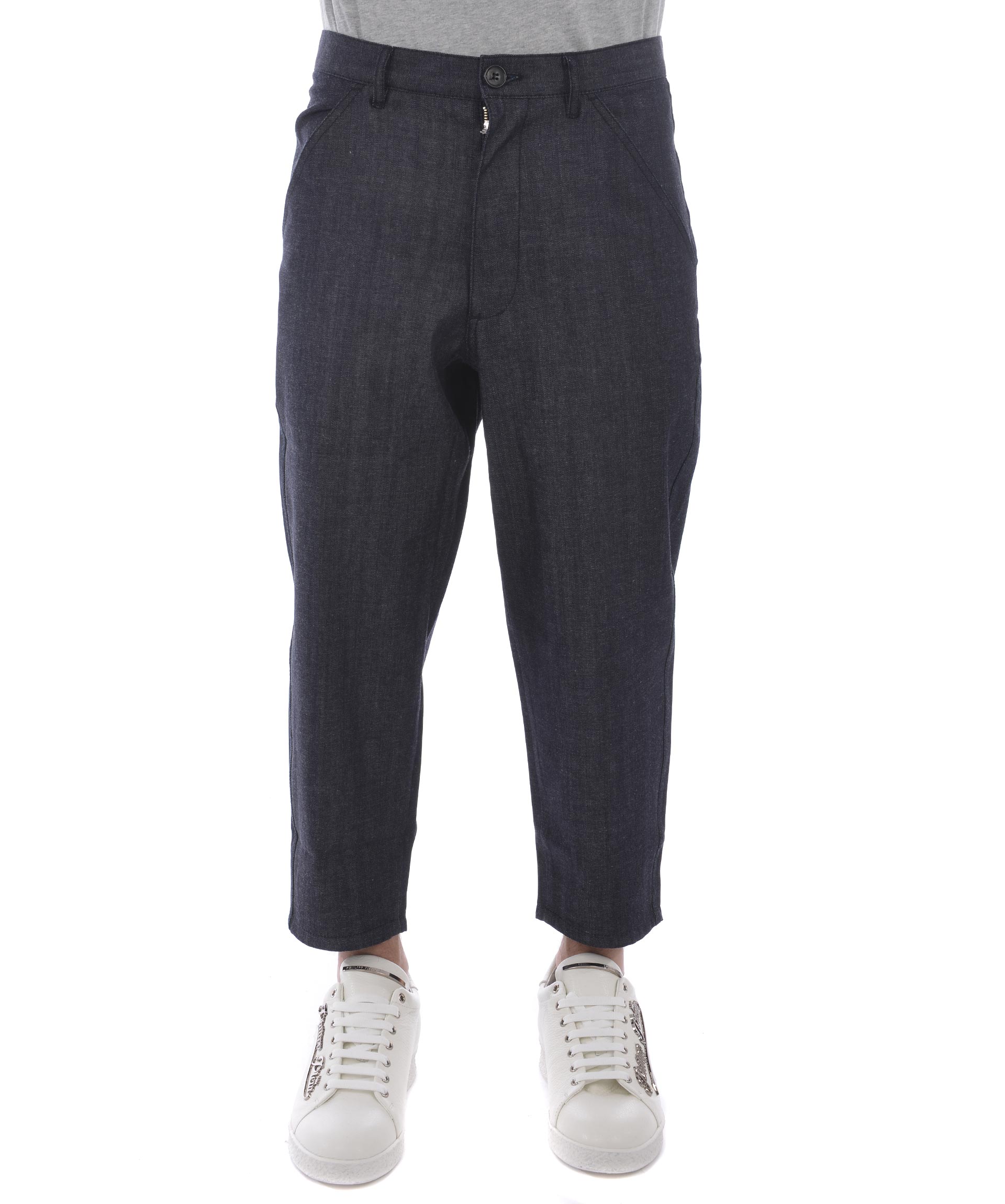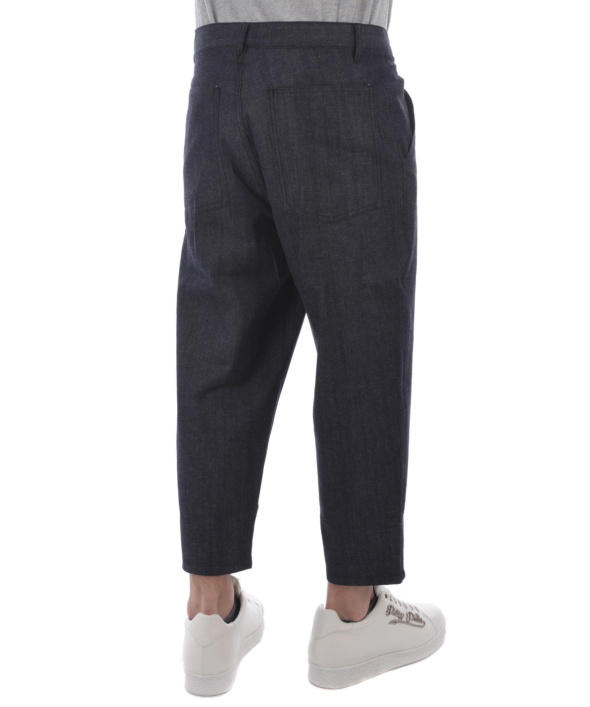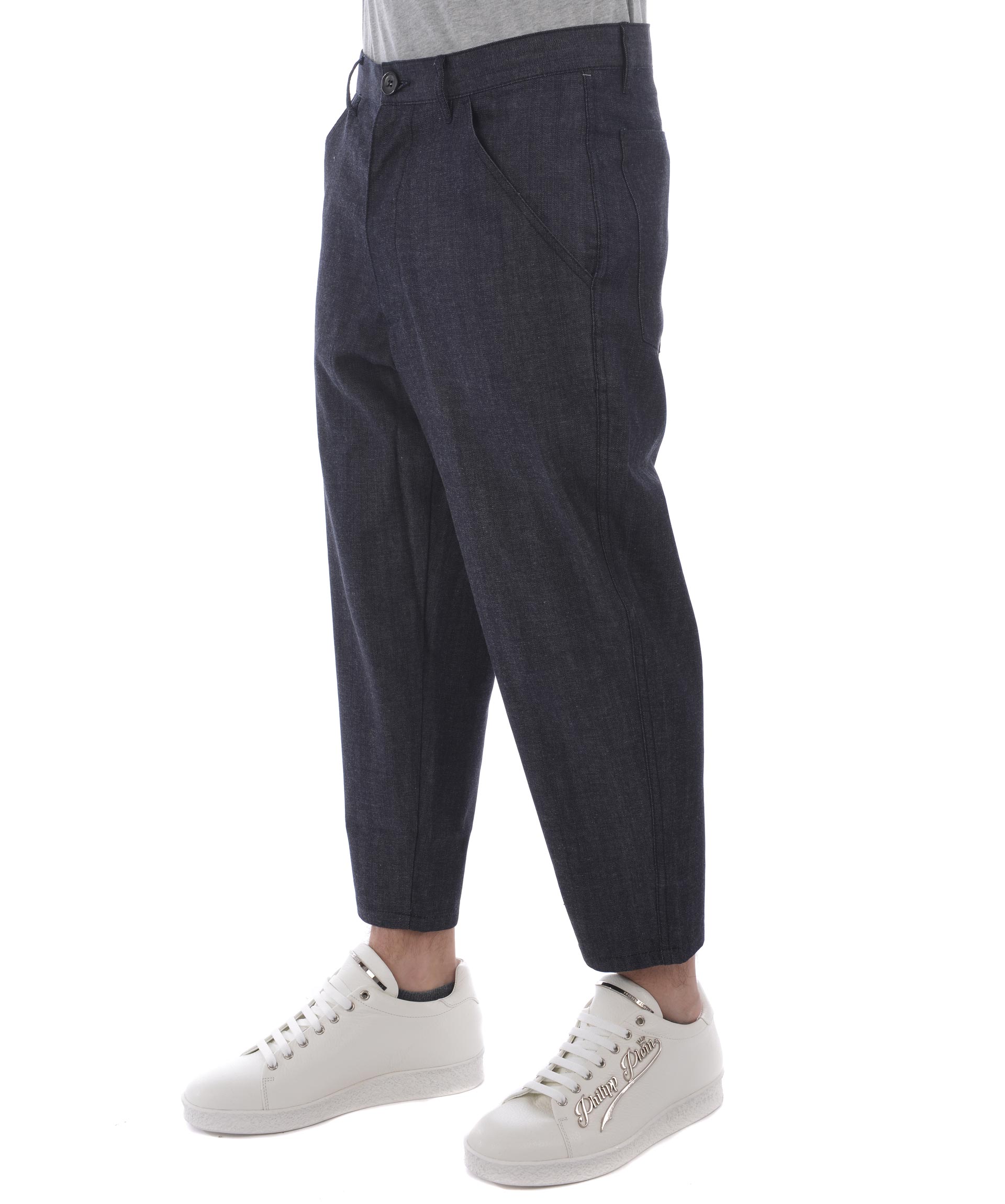 Boys Cropped Trousers from Comme Des Garçons Shirt: Indigo Boys Cropped Trousers with front button and zip fastening, waistband with belt loops, two side pockets and two rear flap pockets.