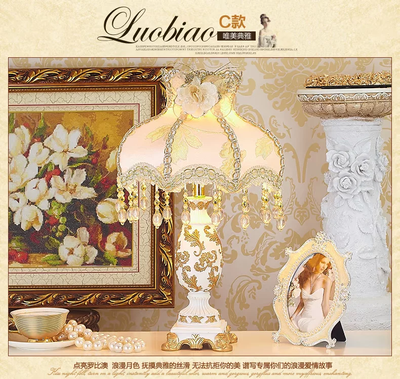 欧式台灯床头台灯卧室奢华复古蕾丝田园台灯公主客厅温馨婚庆结婚    欧式台灯床头台灯卧室奢华复古蕾丝田园台灯公主客厅温馨婚庆结婚
