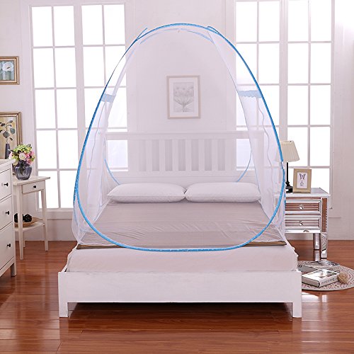 Bed Mosquito Net, Amever One Touch Free Installation Mosquito Netting for Bed Foldable Yurt Mosquito Tent Net Pop Up for Baby Adult (1.0x1.9x1.1m Blue)