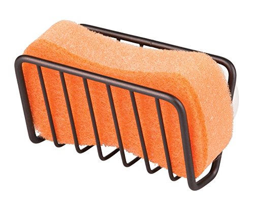 mDesign Kitchen Sink Suction Soap/Sponge Holder for Sponges, Scrubbies, Soap - Bronze
