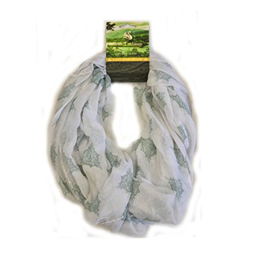 Binding : Apparel Product Description This beautifully made white snood is part of the Carrolls Irish Gifts Exclusive Range. The great thing about a snood is it can be used as both a scarf and a hood, perfect for those cold Autumn and Winter days. It is made from 100% polyester. The snood itself is a light wihte with emerald green Celtic knot work through-out .Perfect for St. Patrick's Day. 0