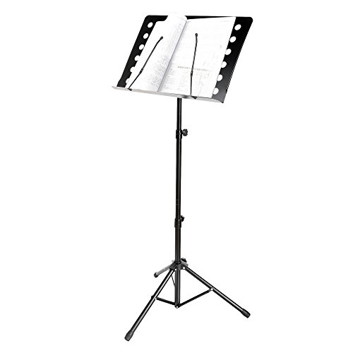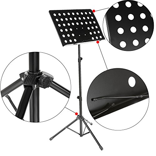 -. Feature : Flexible height adjustment from 19.1 inch to 46.4 inch for your height needs. / Tilting bookplate can freely adjust Angle and make this stand perfect for sitting or standing. / Tripod support legs can freely fold up/ retract, stable and tough. Tripod support legs with non-slip rubber caps for extra sturdiness. / Suit for school, orchestras, choirs, church bands, classrooms. / Package content: 1 x Music Conductor Stand, 1 x Black Carrying Bag, 1 x Tripod Carrying Bag